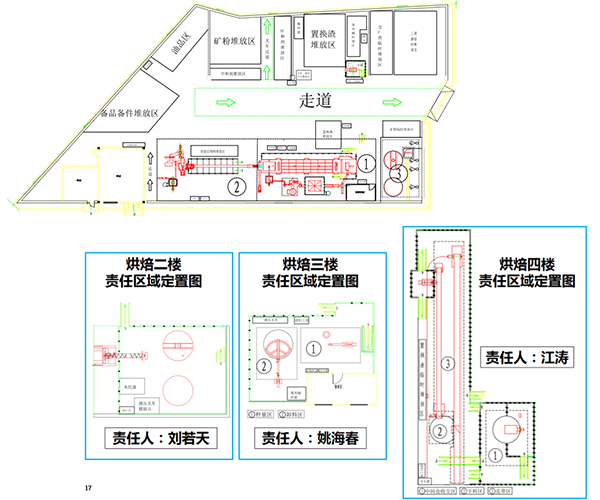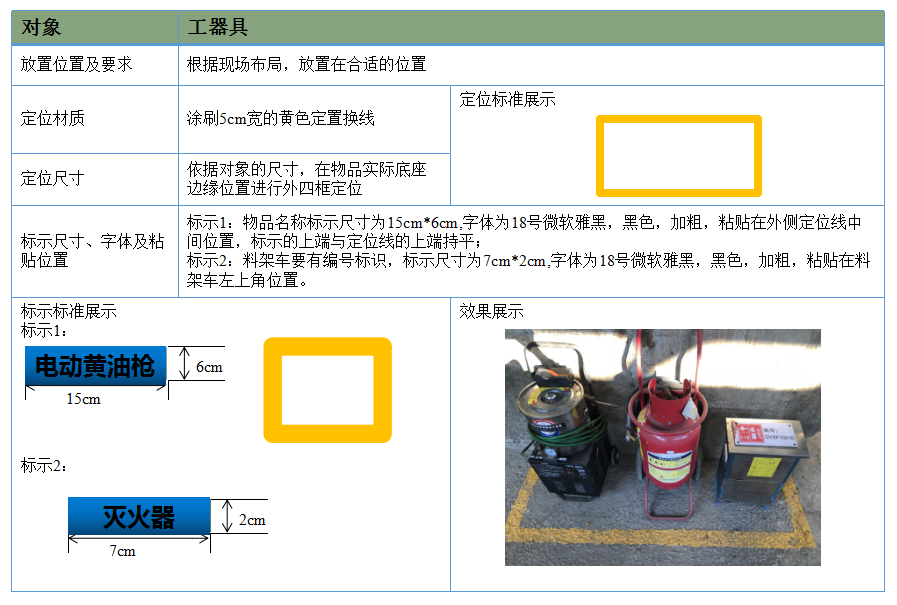 規定物品堆放、工具放置、通道、班組(個人)工作場地位置。