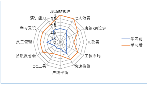 d)通過《現(xiàn)場5S課程》的學(xué)習(xí),班組長課后對(duì)現(xiàn)場問題點(diǎn)進(jìn)行改善;