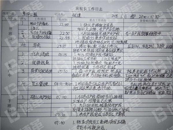 b)通過《班組長工作任務(wù)》的學(xué)習(xí),班組長根據(jù)實(shí)際工作編寫工作任務(wù)表并填寫工作日志: