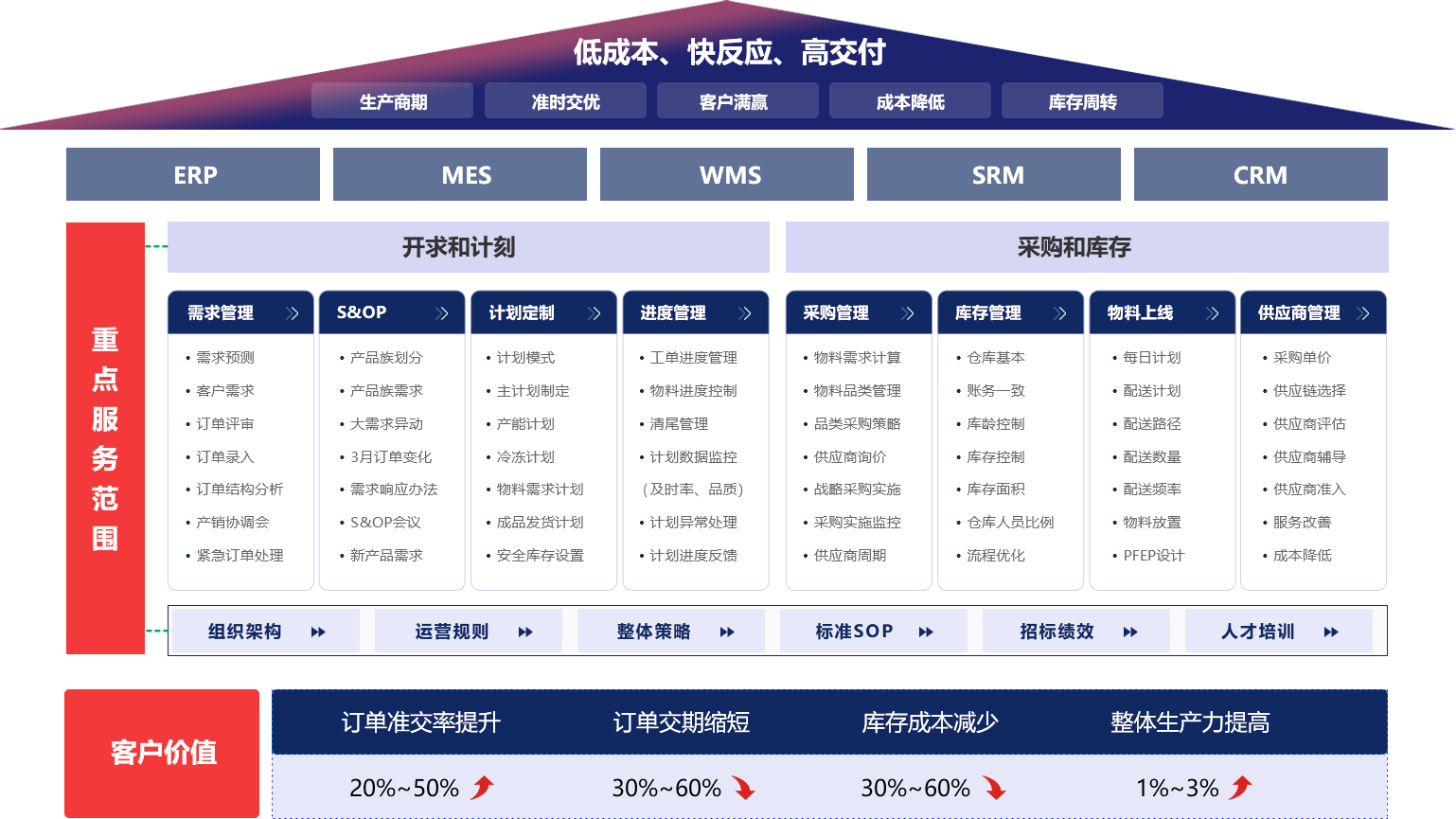 - “精益供應鏈咨詢”是打通端到端敏捷供應鏈,從客戶訂單管理,主生產計劃和物料需求計劃,采購訂單管理到供應商庫存和出貨管理協同共享,