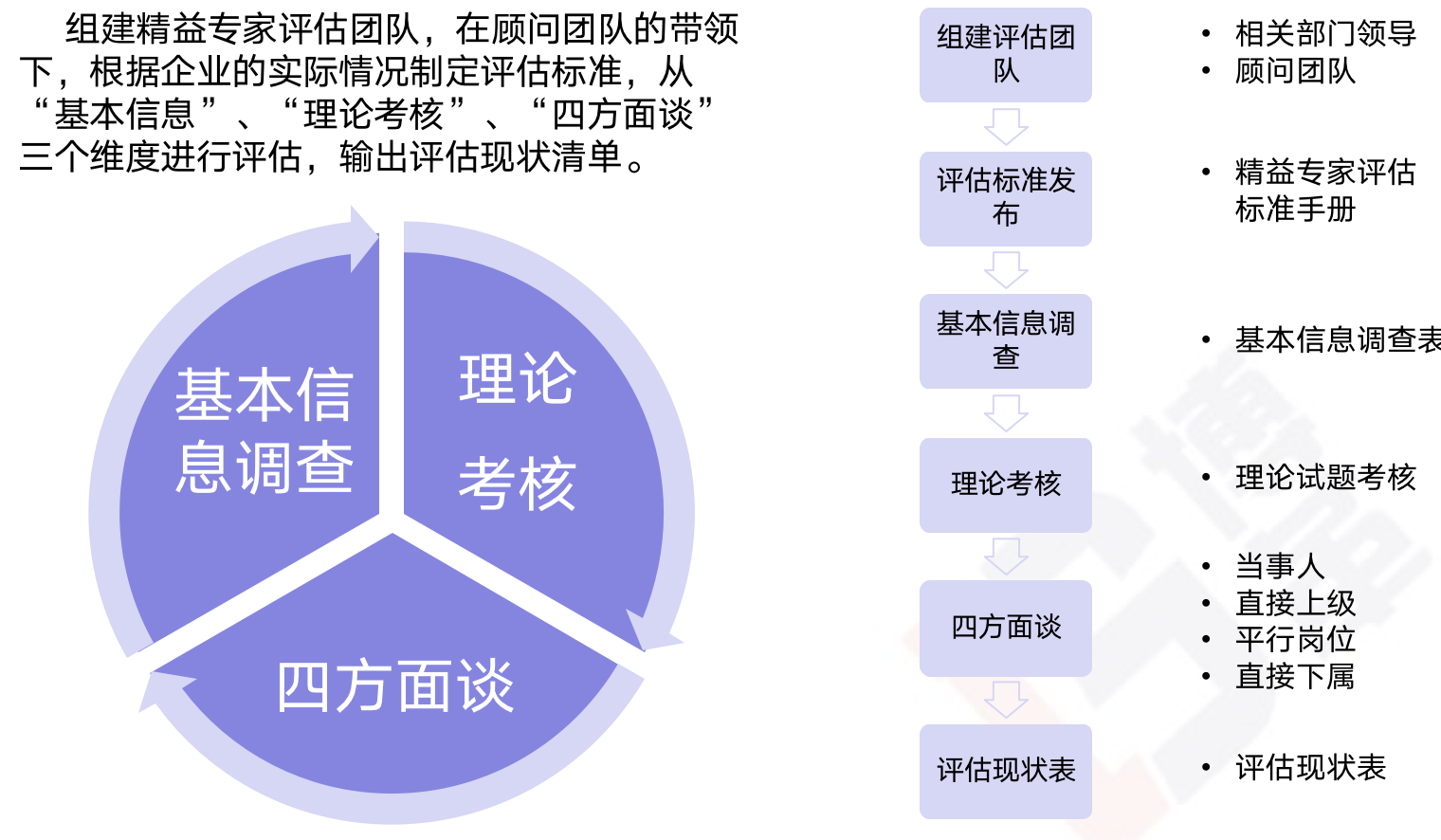 從精益五步法“準備、診斷、設計、計劃實施、持續改善” 和自我管理、團隊管理、業務管理等方面,梳理各層級人員應該掌握的技能;