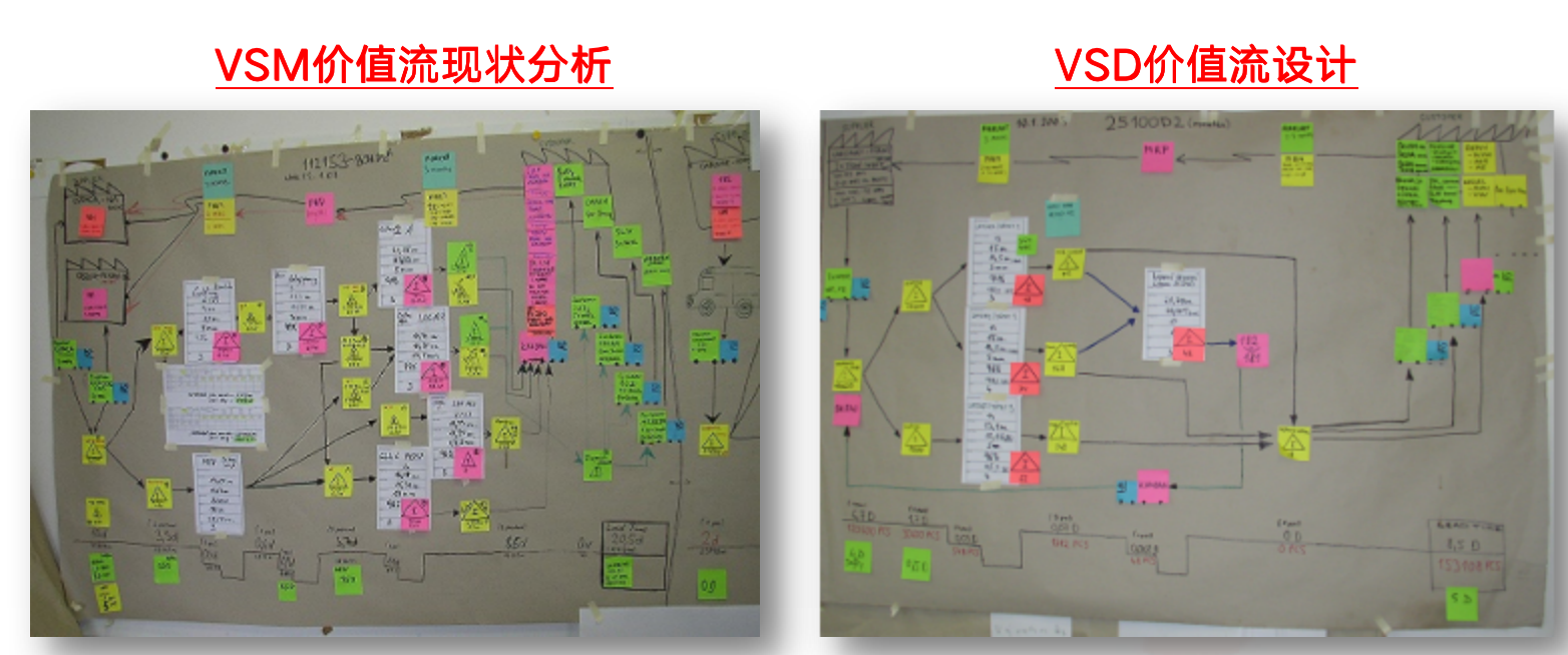 全局化了解工廠生產系統各環節的關系,評估信息流動和產品流動的狀況。通過價值流圖,顯示過程中非增值活動的主要問題點,暴露浪費的根源,從而進行改善舉措規劃,統一工作重點。