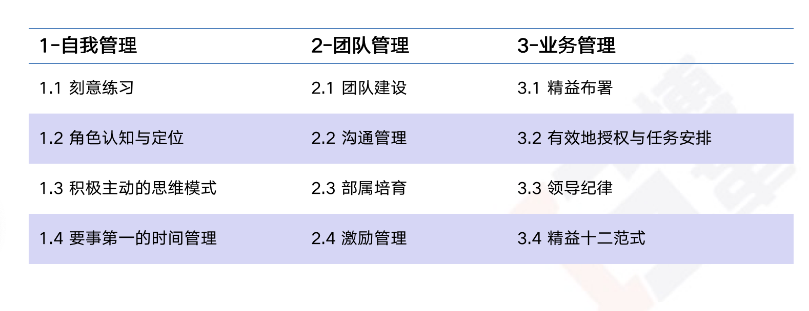將管理者所應具備最基本的理念、態度、原則與技法,匯總成【自我管理】、【團隊管理】、【業務管理】三大模塊,讓其知曉日常管理方法與原則間的差距,了解管理的弱點及偏差,掌握系統的全套管理方法和工具,從而重整自己的管理經驗
