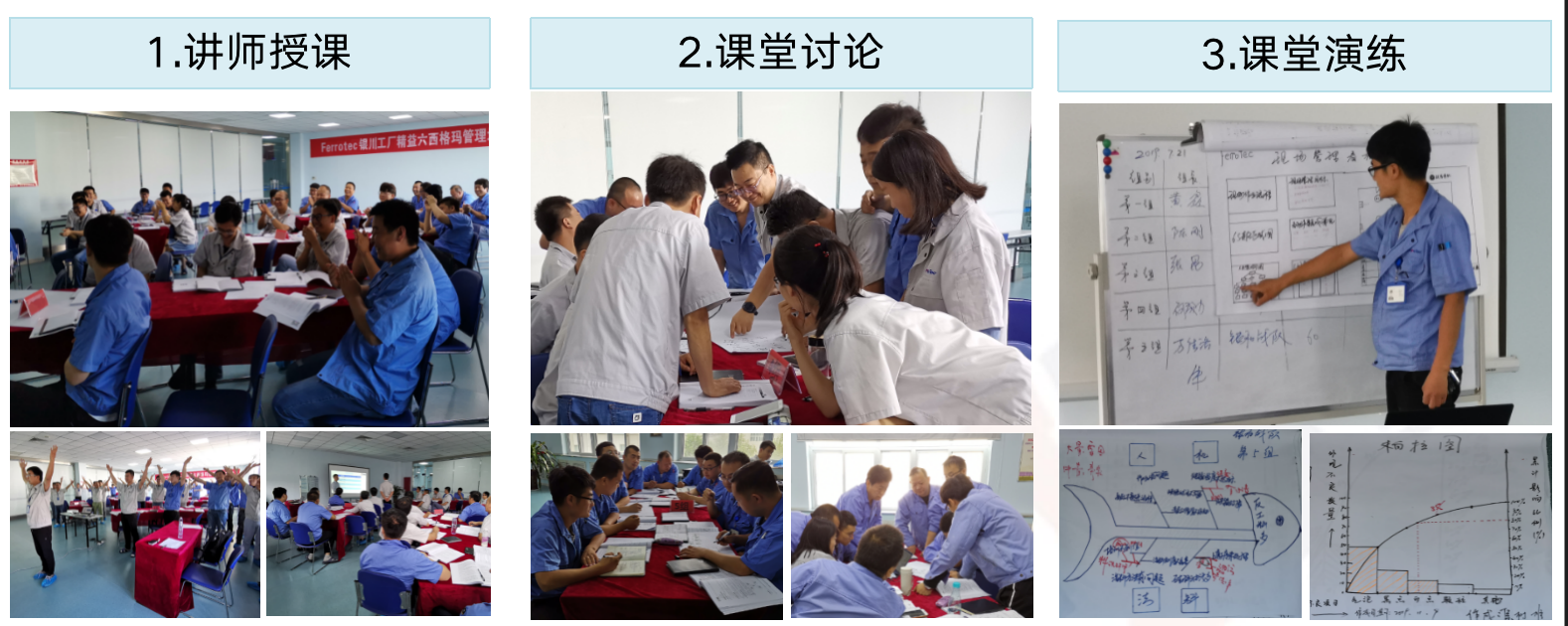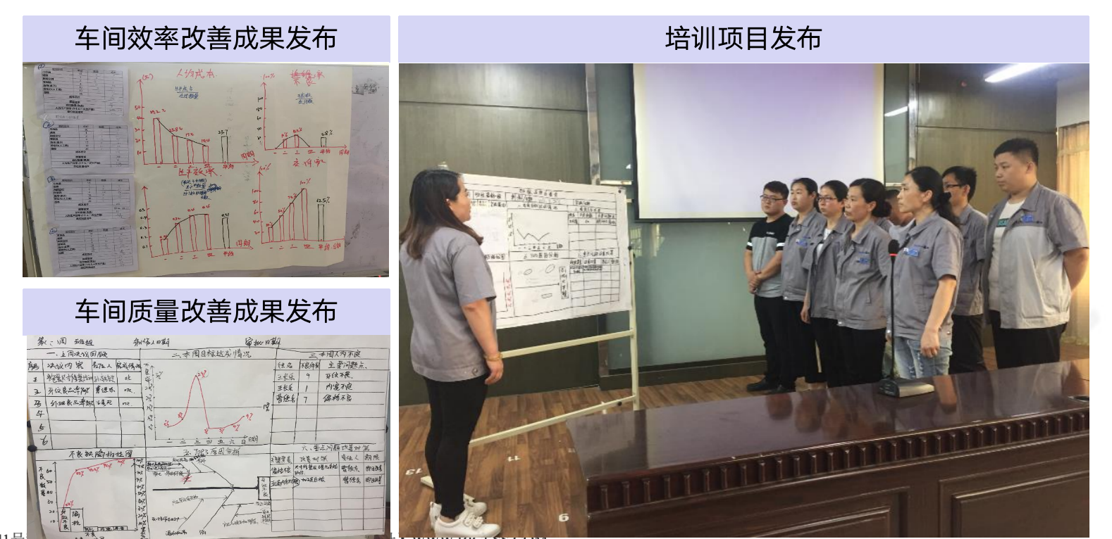 按照“精益五步法”理論課程分為“改善技能類”和“管理技能類”,每月培訓1次,每次培訓1.5天