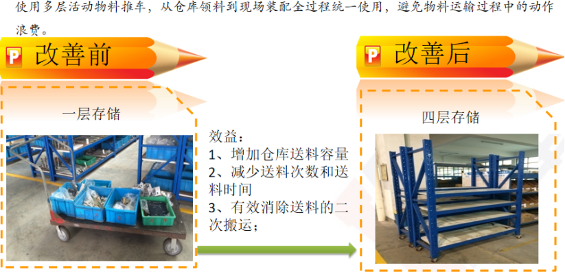 (3)物料推車存放物料較少,還存在卸貨浪費