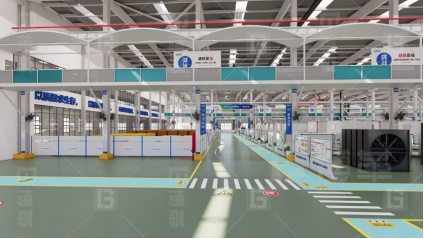 · 地標箭頭指引工序流轉路線,物流與人流分離。