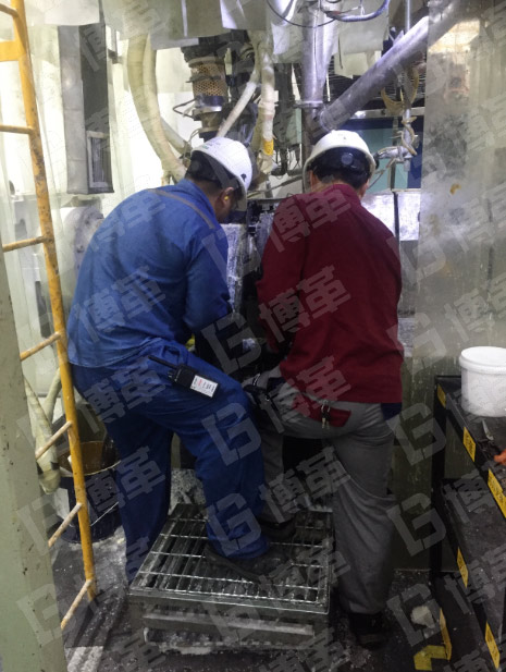 三、清掃共分兩組進行,對加料口正面和背面做清掃,并按步驟先對加料口、加料口導流槽、廢料收集槽等進行清理