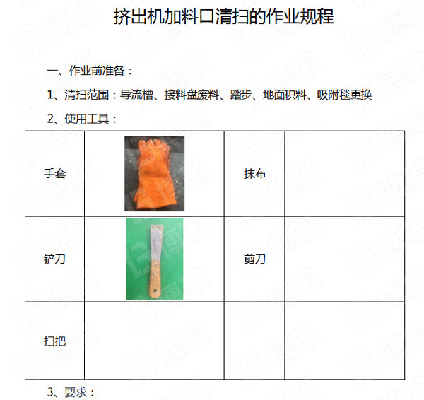 上海某化工企業于今年1月開始導入TPM管理,從3月份開始成功導入六源管理,對擠出機加料口清掃困難源的管理,開展了清掃的活動