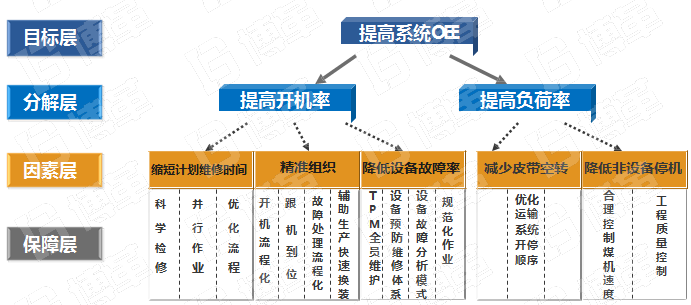 以O(shè)EE指標為引導,制定了關(guān)鍵路徑法,以提高開機率和性能開動率為兩條主線,提高設(shè)備綜合利用效率,從而提高綜采產(chǎn)能。