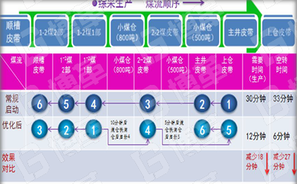 ?優(yōu)化主運輸系統(tǒng)“開、停”順序,縮短空轉(zhuǎn)待機時間,通過優(yōu)化每天可以增加18分鐘的運轉(zhuǎn)時間,減少27分鐘的空轉(zhuǎn)時間。